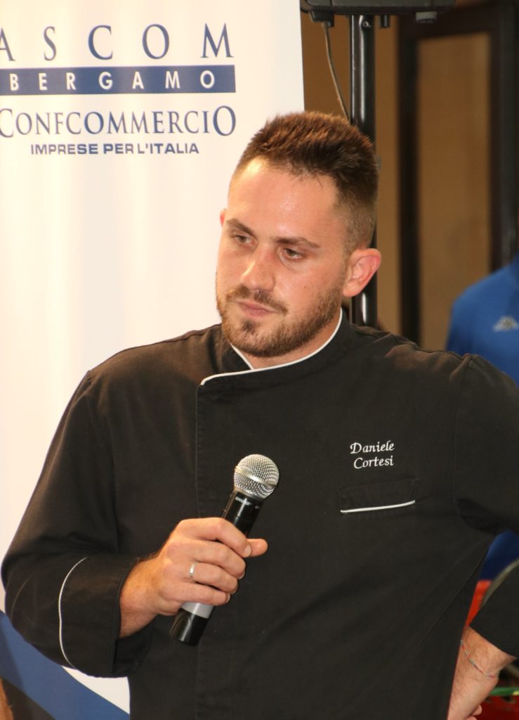 È questo anche lo stile della sua cucina, che non disdegna prodotti e abbinamenti insoliti e ricercati, frutto dell’esperienza internazionale. Diplomato alla scuola alberghiera di Nembro, Cortesi, infatti, non si è lasciato sfuggire l’occasione di vedere come vanno le cose dall’altro capo del mondo e dopo il cursus di rito Sardegna-Val Gardena-Inghilerra è volato al The Venetian di Macao, gemello dell’omonimo hotel casinò di Las Vegas che ricrea palazzi e canali di Venezia: un colosso da 3.000 suite e 18mila dipendenti, settimo tra gli edifici più grandi al mondo, primo degli alberghi.