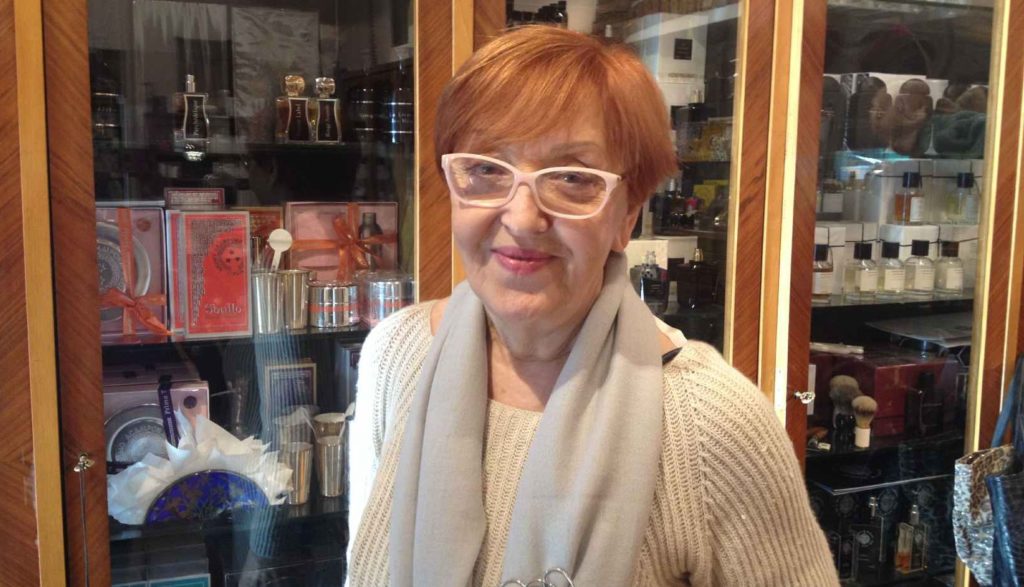 Ad acquistarlo è stata la mamma, Liliana Pozzi, nel 1958, dalla precedente titolare. L’attività ha mantenuto lo stesso volto dagli anni Sessanta, tra antichi mobili in radica, specchi dalle cornici intarsiate, bijoux raffinati e una montagna di profumi introvabili altrove, custoditi dietro le vetrine. E inalterata è rimasta la vocazione, di nicchia. “Io e mio fratello siamo cresciuti in bottega, tra cristalli e boccette delicate, non stavo mai ferma, ma mia mamma mi lasciava libera – racconta la signora Augusta -. Per lei l’importante era che non mettessi piede in un negozio commerciale, diceva che mi avrebbe disturbato, confondendomi le idee. Un giorno un ragazzo che frequentavo mi regalò una bottiglietta di un noto stilista francese durante una festa a Parigi, mia mamma rispose: ti concedo il fidanzato, non quell’acquetta”.